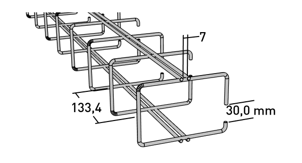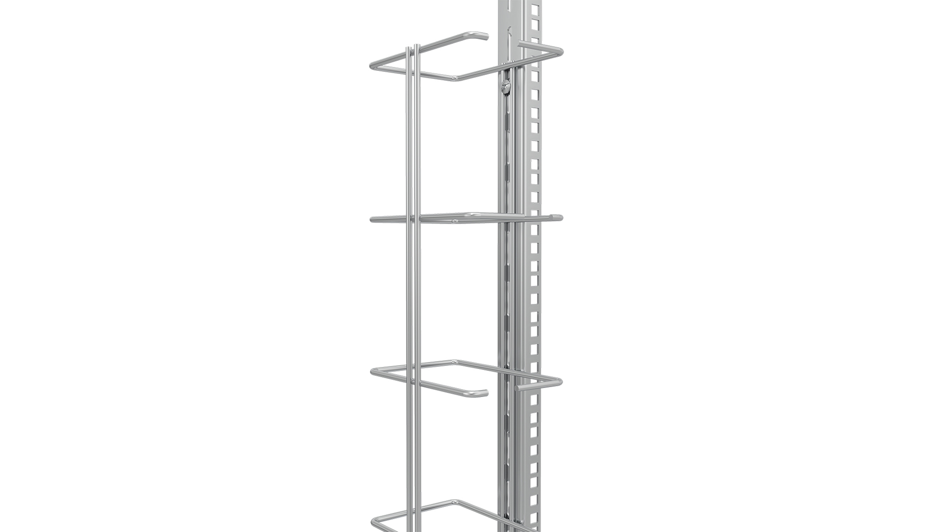 Trådledare för montage på sidan av stativ (skruv MP-855 E 50 021 58). Avståndet mellan varje trådledare är 3U (~133 mm), totalt 13 trådledare.