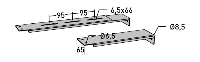 Fästjärnet är avsett för fastsättning av stativet upptill vid vägg. Två fästjärn/stativ krävs. Passande skruvsats 50 021 58.