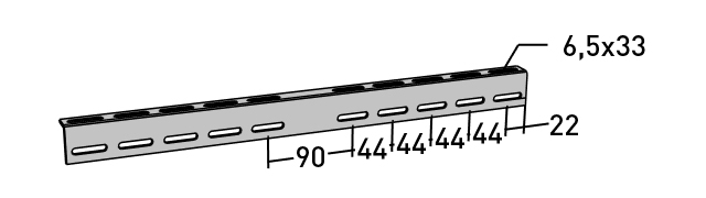 För montering av transformatorer, apparatlådor och dyl. i stativet. Godstjockleken är 2,0 mm, längd 485 mm.