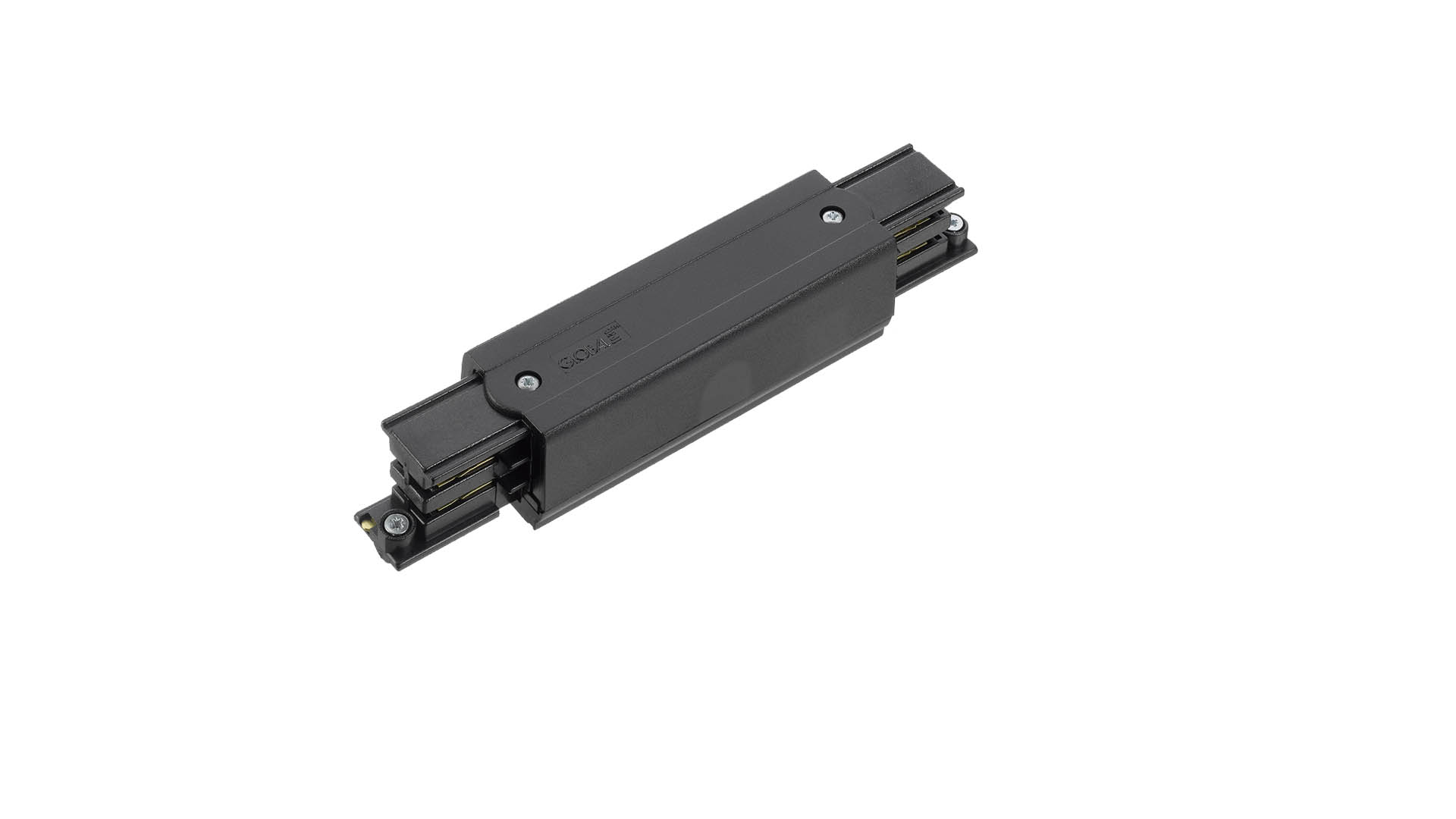 Skarvstycke Pro - svart (RAL9005). Passar både infällda och utanpåliggande skenor. Ingång för matande kabel finns.