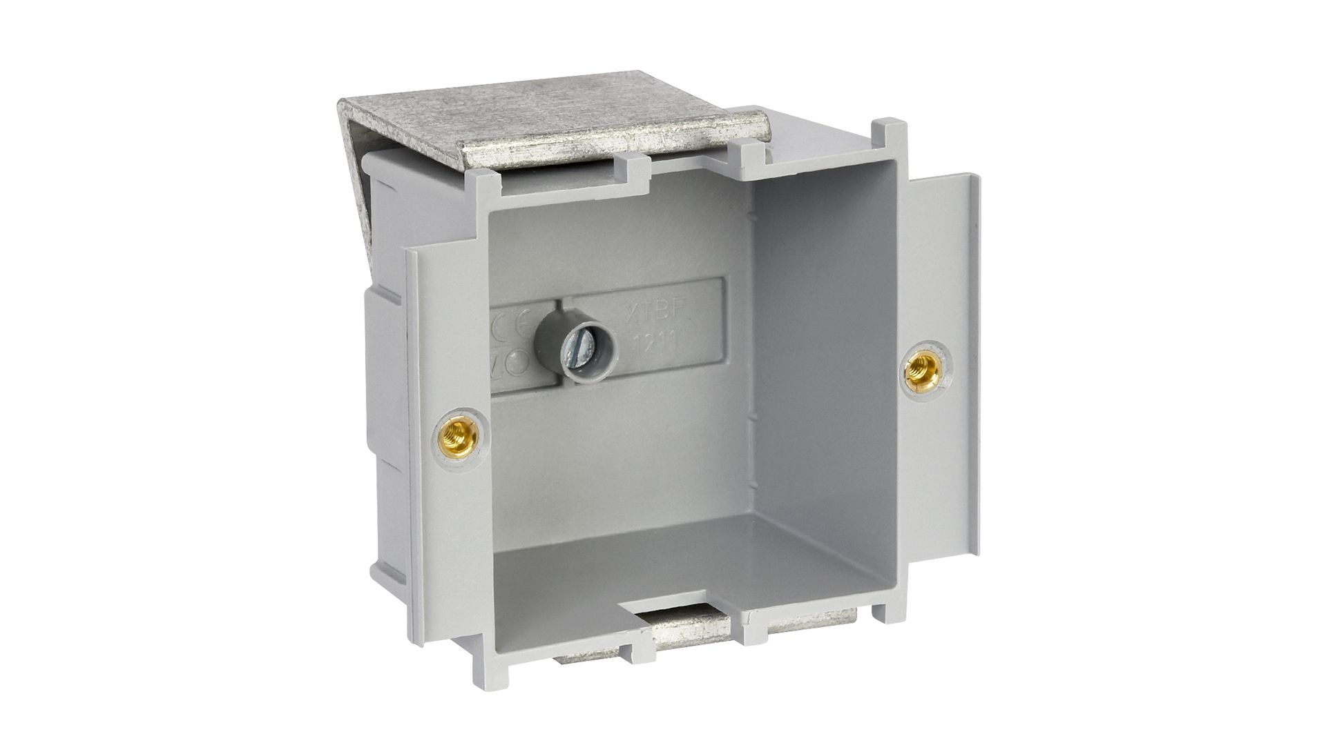 Apparatdosa som passar för kraftuttag ABB exempelvis CUED 416-6. Apparatdosan fixeras i kanalen med medföljande tillbehör (exkl. dragavlastare).