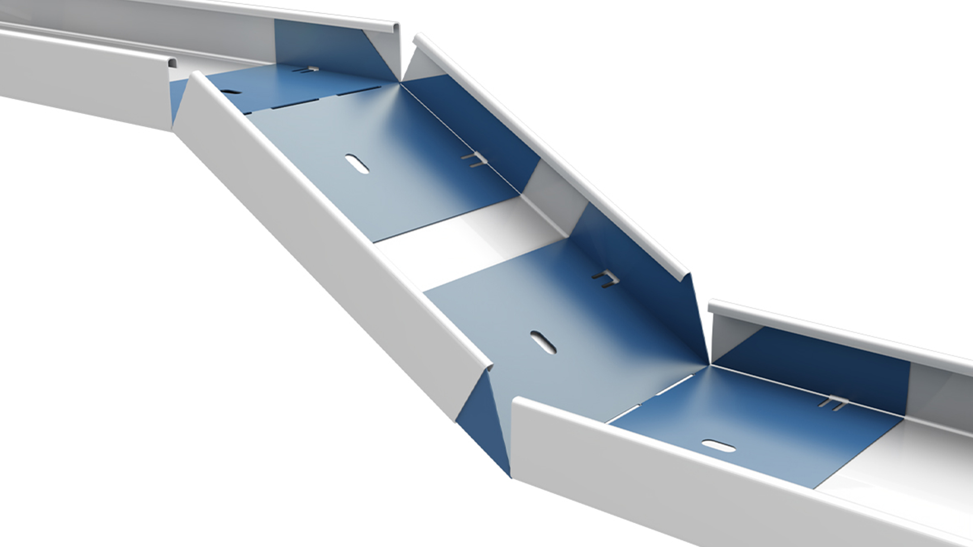 Monteras som skarv i rännan. Alternativ – såga i rännans sidokant och knäck rännan till önskad vinkel.