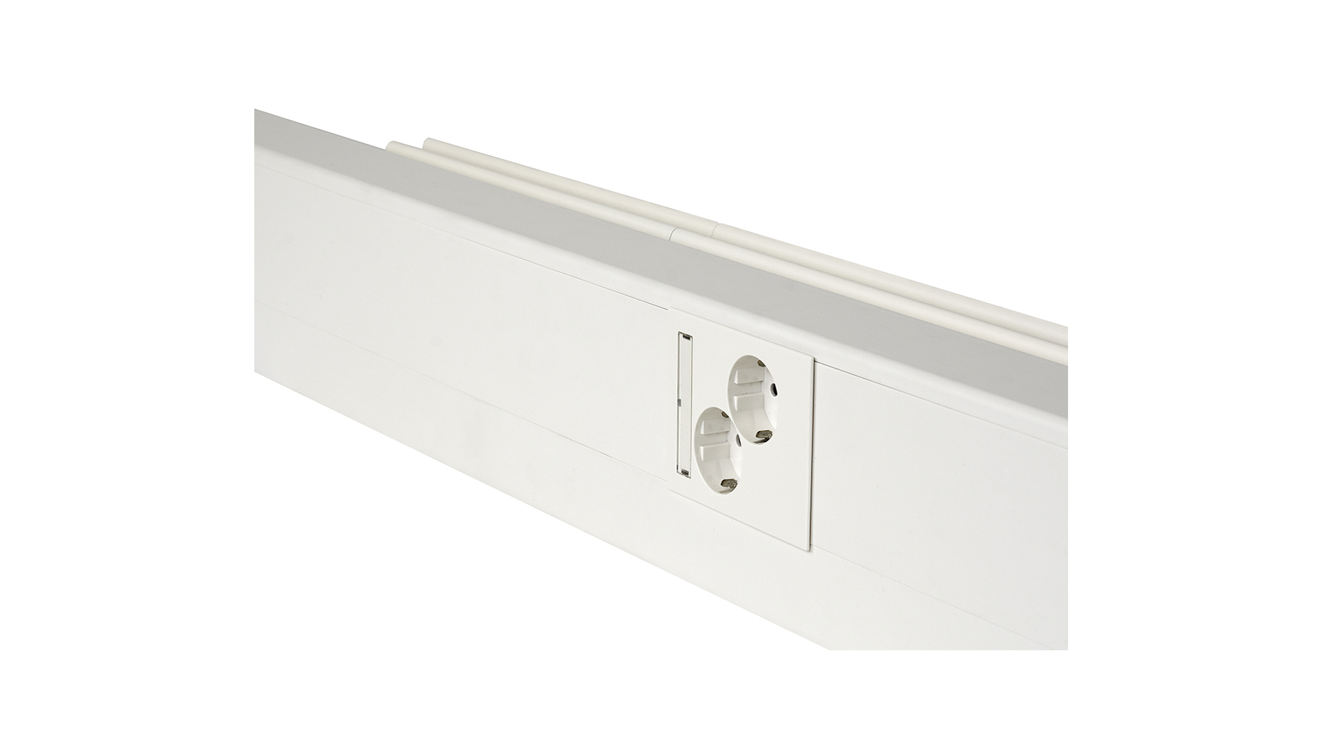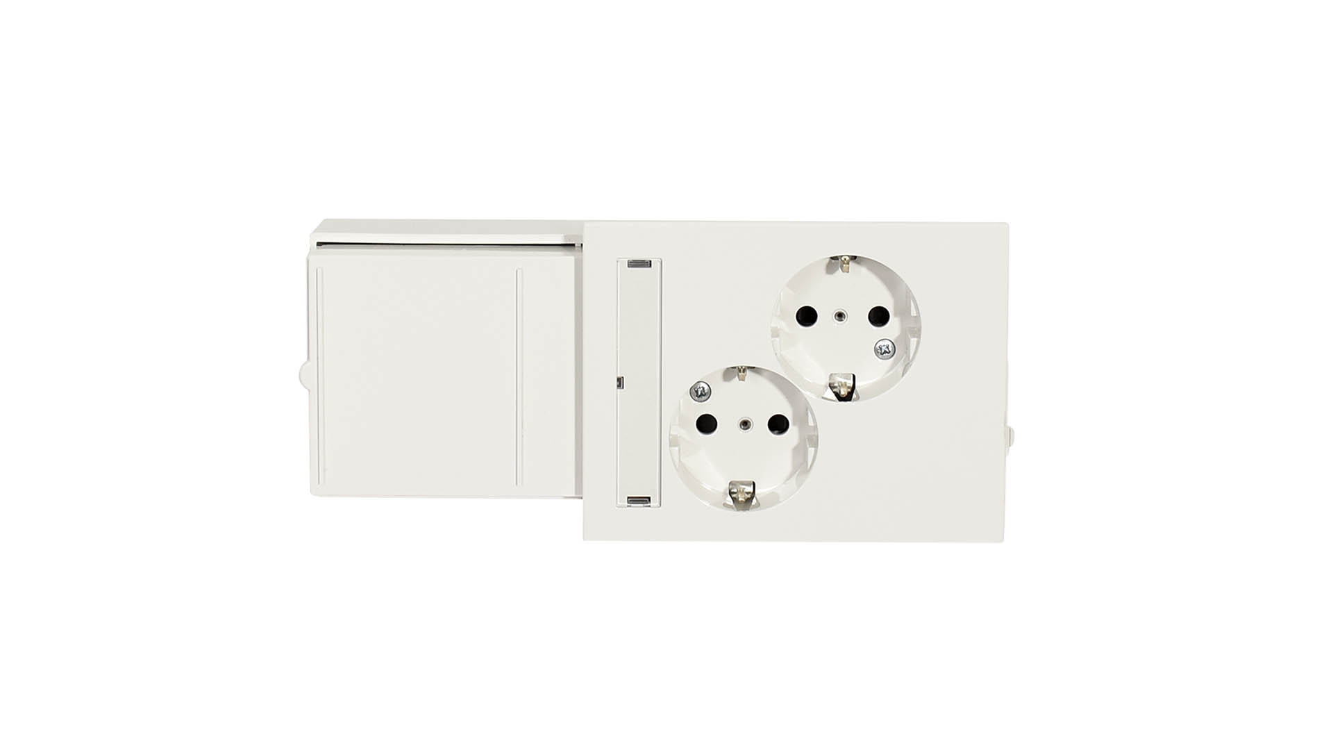 Monteringsfärdigt 2-vägs vägguttag med märkfönster. Dold kopplingsdosa med dragavlastare, samt 3 st snabbanslutningar. Godkänd för överkoppling 3-fasigt.