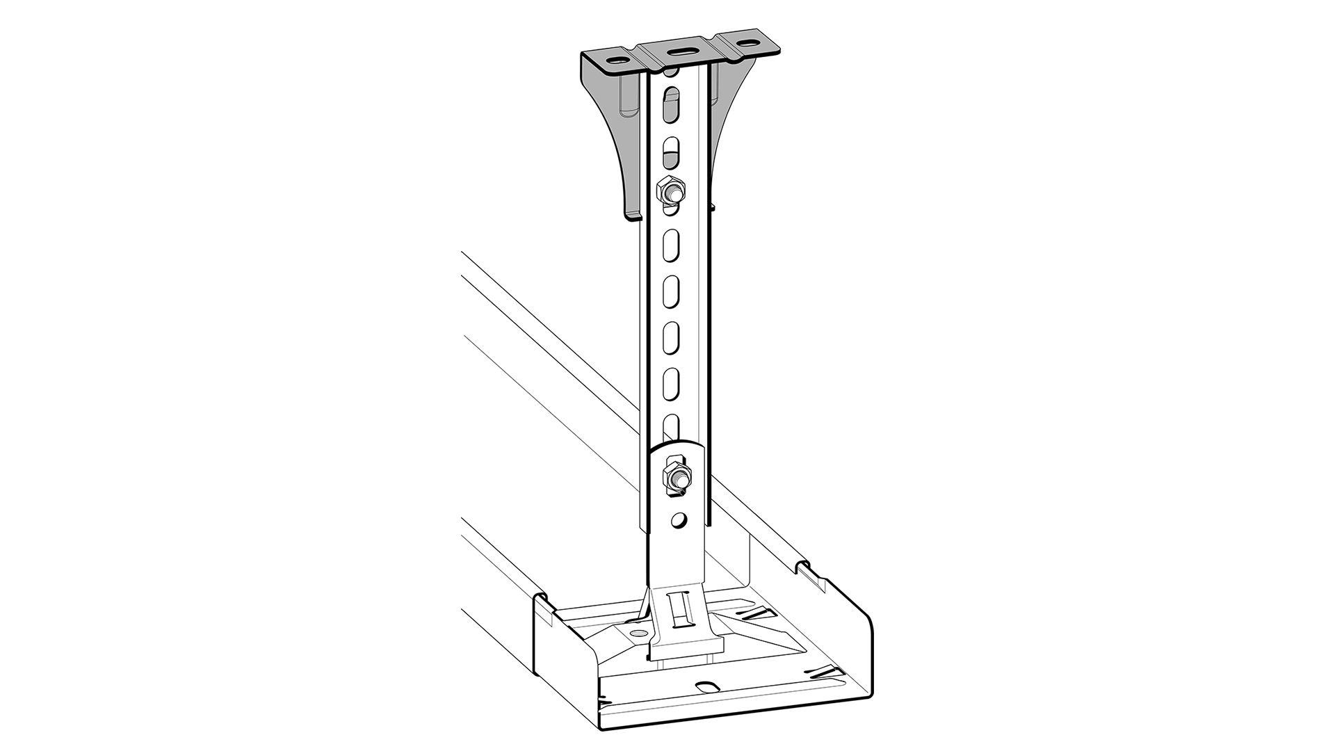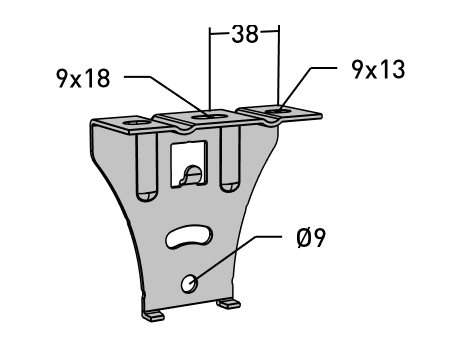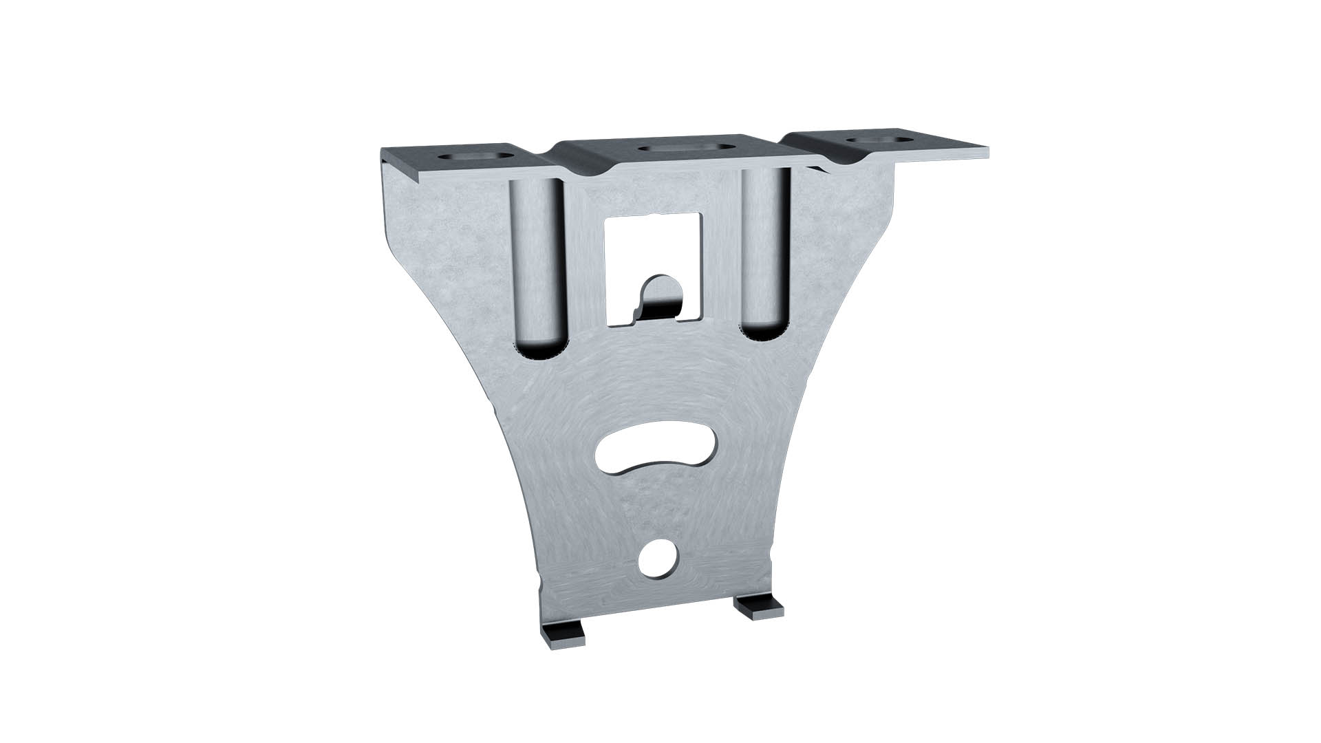 Takfäste till pendelskena för montage av kabelstegar, trådstegar och kabelrännor som pendlas från tak. Fästet har en krok där pendelskenan kan hängas upp innan den fixeras med skruv. Vid lutande tak kan fästet vändas och medger upp till 20 graders lutning. Takfästet är tillverkat i sendzimirförzinkad plåt (20 µm) och är användbar i miljöklass max C2. Maxlast 250 kg.