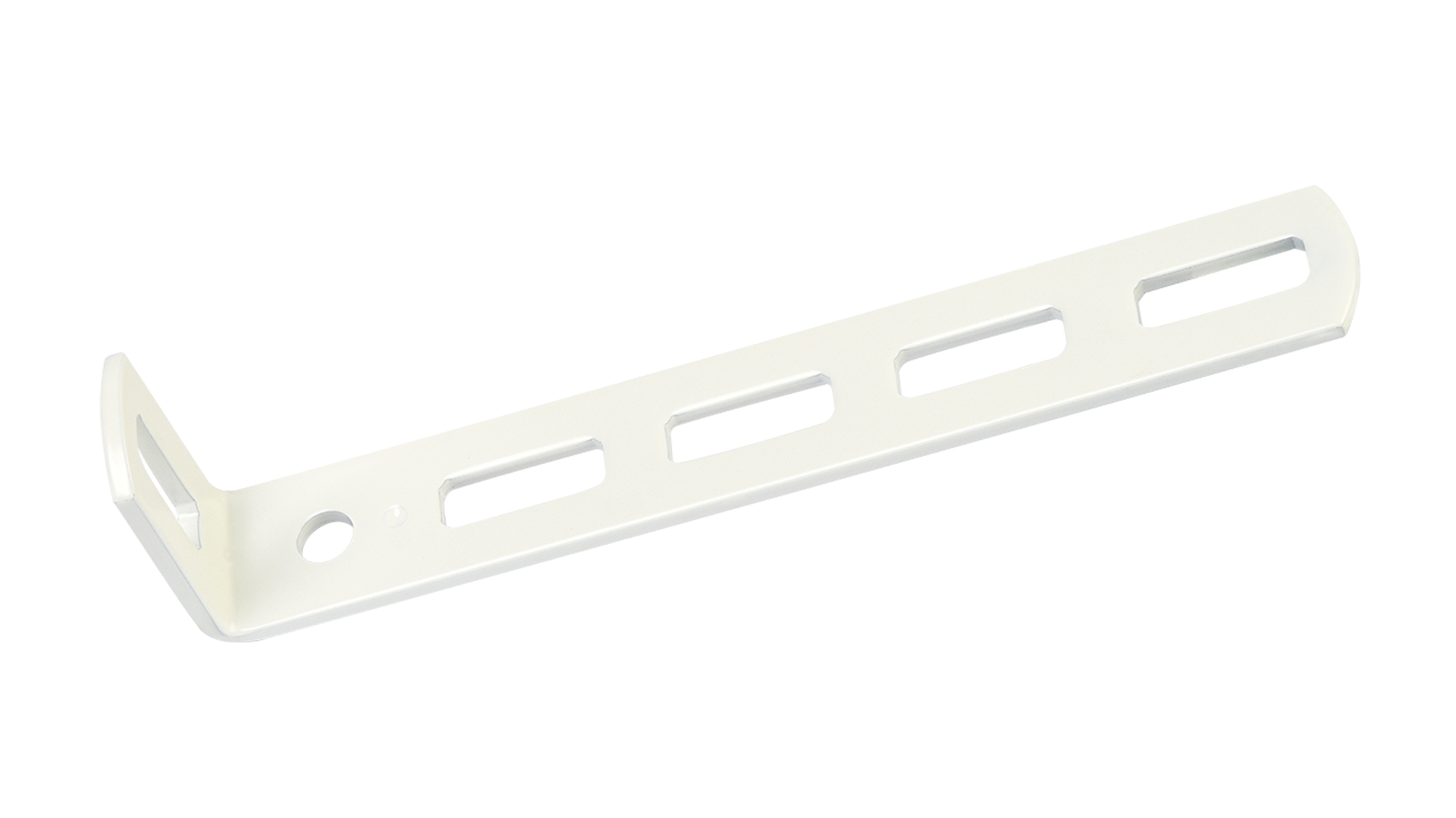 Vitlackerat vinkelfäste 200 mm som kan användas till många olika lösningar. Fästet är tillverkat i pulverlackad stål och är användbart i miljöklass max C2. Monteras med MP-bultsats M8x16 (11 157 11). Uppfyller kraven för potentialutjämning enligt SS-EN 61537:2007.