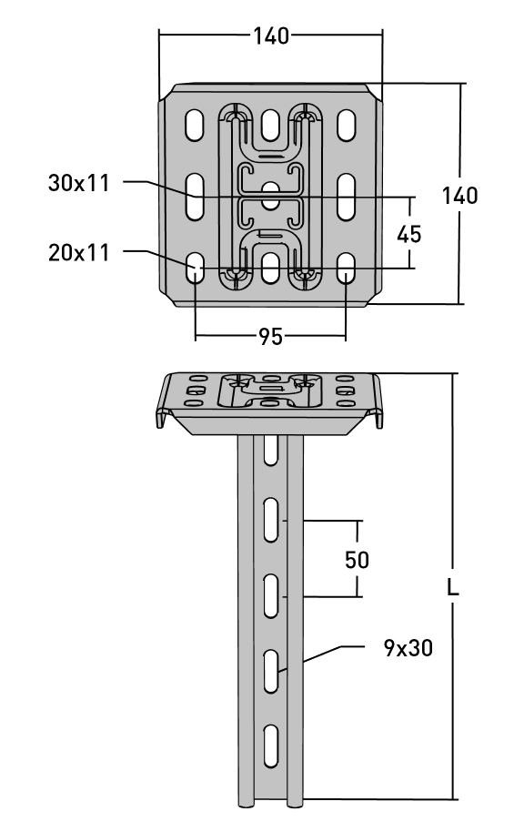 Dubbelsidig tak-/golvpendel - MP-DV 2x21x41 mm. Används till att pendla från tak men kan även användas som stöd mot ett golv vid både sido och mittmontage. Takpendeln är tillverkad av syrafast stål och är användbar i max miljöklass C5-M. Komplettera med mutterbricka för enkel justering av bärkonsol.