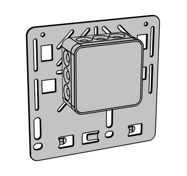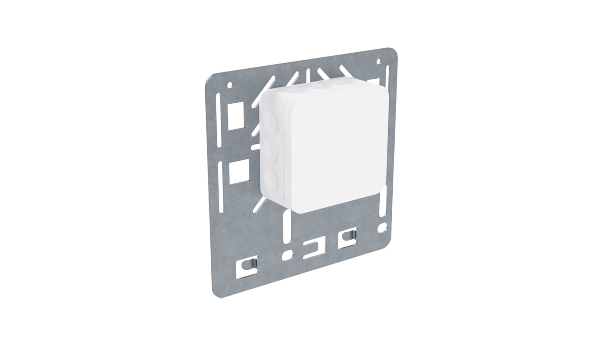 Fästplåt för kabelstegar med halogenfri förmonterad kopplingsdosa IP65 med tio införingar. Levereras utan plint, passande dragavlastning - ABB E14 382 73. Passande plint - 14 384 01. Det finns även hålbild för 2 st Actassi och 2 st Keystone för enkel montage av datajack.