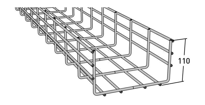 Trådstege för smidiga installationer. Trådarnas diameter är 5 mm. En högre variant med 110 mm höga sidor då lite mer utrymme krävs. Tillbehören är samma som den lägre modellen. Trådstegen är tillverkad i en zinkmagnesium legering (25 µm) och är användbar i miljöklass max C4. Fördelen med detta material är att det självläker vid exempelvis kapning och är ett mer hållbart alternativ än traditionell varmgalvning. Flera av tillbehören delas med övriga MP-sortimentet. Kan beställas i valfri lackerad kulör.
