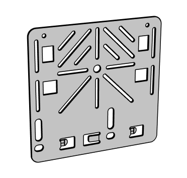 Fästplåt för montage av dosor och uttag m m. Snäpps fast i stegsidan på stegtyperna MP-S, TS, Z, PZ och AZ. Skruvas fast på stegtyp MP-FZ.